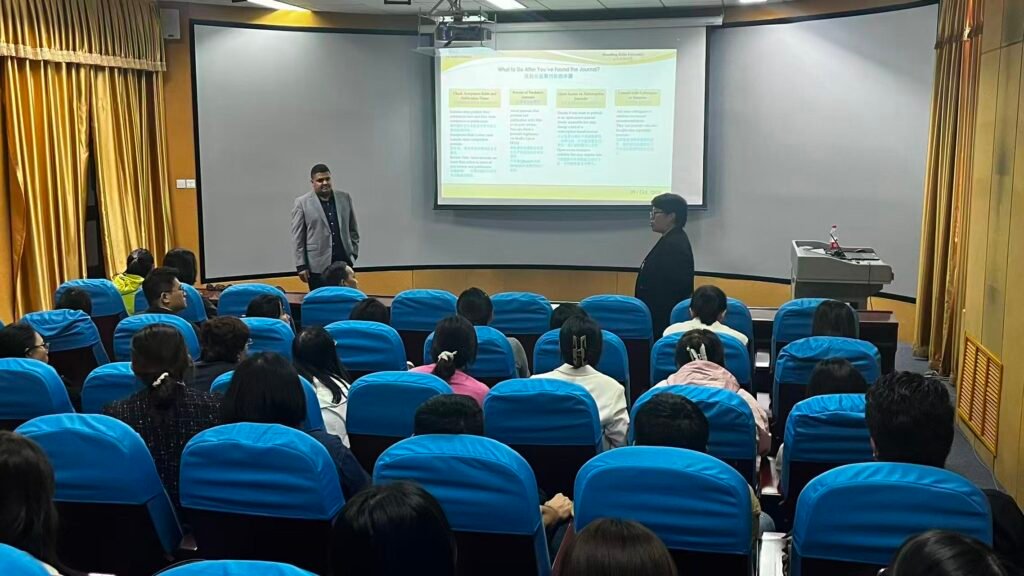 Today, Dr. Amer Mohammed Al-Dhobaiani delivered a lecture to the faculty members of Shandong Xiaha University on the different types of scientific research and the most in-demand and widely accepted research categories in leading international journals.
